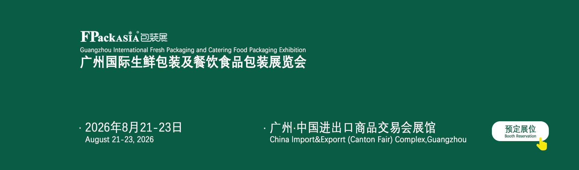 FPackAsia2026广州国际生鲜包装及餐饮食品包装展览会(简称:FPackAsia包装展),展会立足中国,汇聚了专业优质的专业观众,2026年展会全新升级,全面聚焦餐饮、生鲜、食品食材包装等上下游加工包装产业整体解决方案!助力行业实现绿色、低碳、可持续发展,引领行业向智能包装的国际化新阶段迈进。 上一届展会交出了一张亮丽的成绩单,有来自全国各地近400+家知名展商如约参展,近两干款新品重磅首发,大会共获得了4.63万人次前来参观,这应证了行业对FPackAsia包装展会的持续信赖,同时也反应了业界对创新包装技术的不断追求。勇于思考当下,瞻望未来。 展望2026,FPackAsia包装展将继续与行业携手于2026年8月21-23日在中国进出口商品交易会展馆再度拉开帷幕。本届展会以“包装万物·装容未来”为主题,与BLFAaisa液态加工技术展/广博会同期举办,预计展会将吸引来自中国、印尼、美国、英国、越南、泰国、马来西亚、印度、台湾地区、香港地区、法国、巴西、俄罗斯、荷兰、日本、韩国等30多个国家和地区观众来会参加,展会同期将举办行业主题研讨会及产品推介会,行业创新发展高峰论坛、促进行业前沿信息和技术交流,共同探索最新市场发展趋势和创新的解决方案,并推动建立合作伙伴关系!